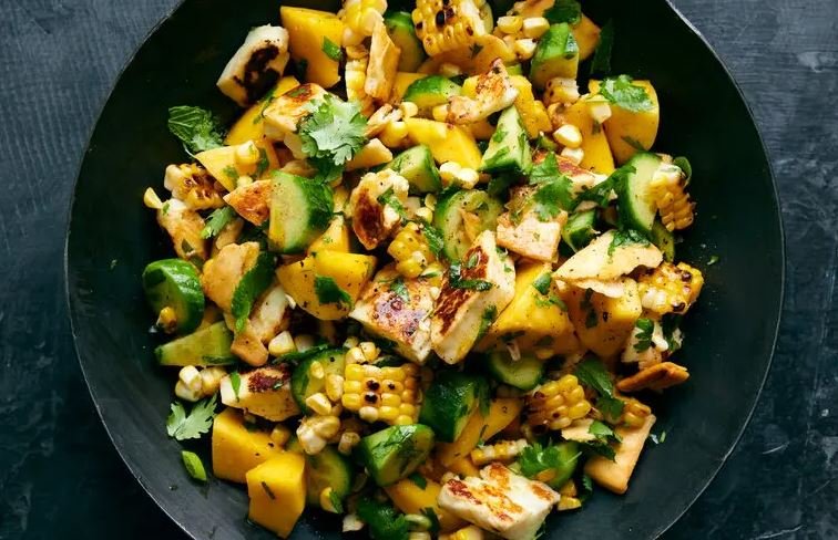 We all eat more salads during summer but sometimes its nice to do something with ingredients other than a lettuce. These fresh salads bring together some of summer's best and brightest ingredients like, corn, mango, watermelon, and cucumbers.