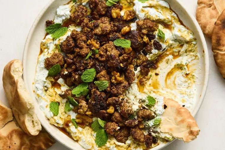 This quick skillet dinner of spiced, seared ground beef over cooling yogurt combines elements of two Persian classics. Eaten with homemade pita bread and you'll never want to go back to store bought!